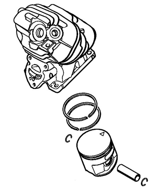 Satz Zylinder mit Kolben, Verdichtungsringen, Kolbenbolzen und Sicherringen. Zylinder mit Kolben Ø 44,7 mm wird auch hier verwendet: MS 261 C-BM...